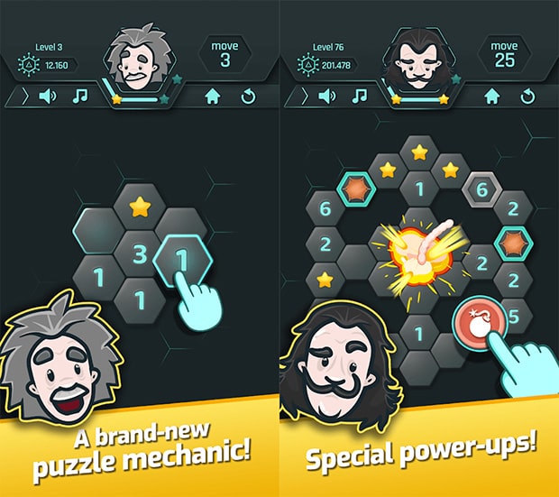 Inspired by Japanese puzzle games like Sudoku, Kakuro and Hitori, the idea for Baduka is to leap over the numbers written on hexagonal cells, which are placed on a special multi-hexa shaped pattern, until you’ve managed to clear all patterns.